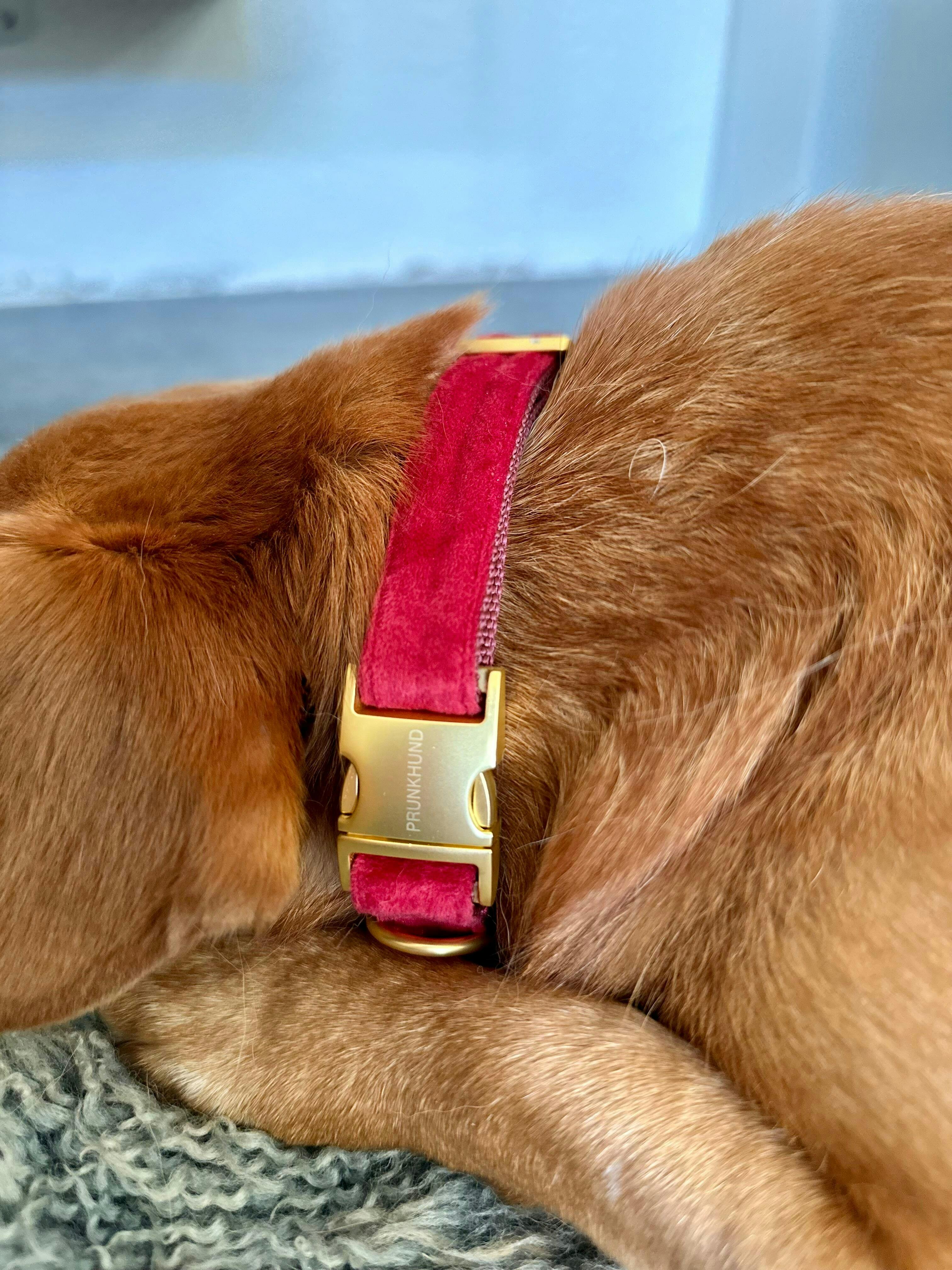Unsere Halsbänder kannst du ganz einfach bei 30 °C in der Waschmaschine reinigen – am besten im Wäschebeutel oder einem Paar Socken, um Metallteile und Maschine zu schonen. Danach einfach lufttrocknen. Kein Trockner. Kein Drama. Und dein PRUNKHUND Halsband ist wieder bereit für die nächsten Abenteuer.