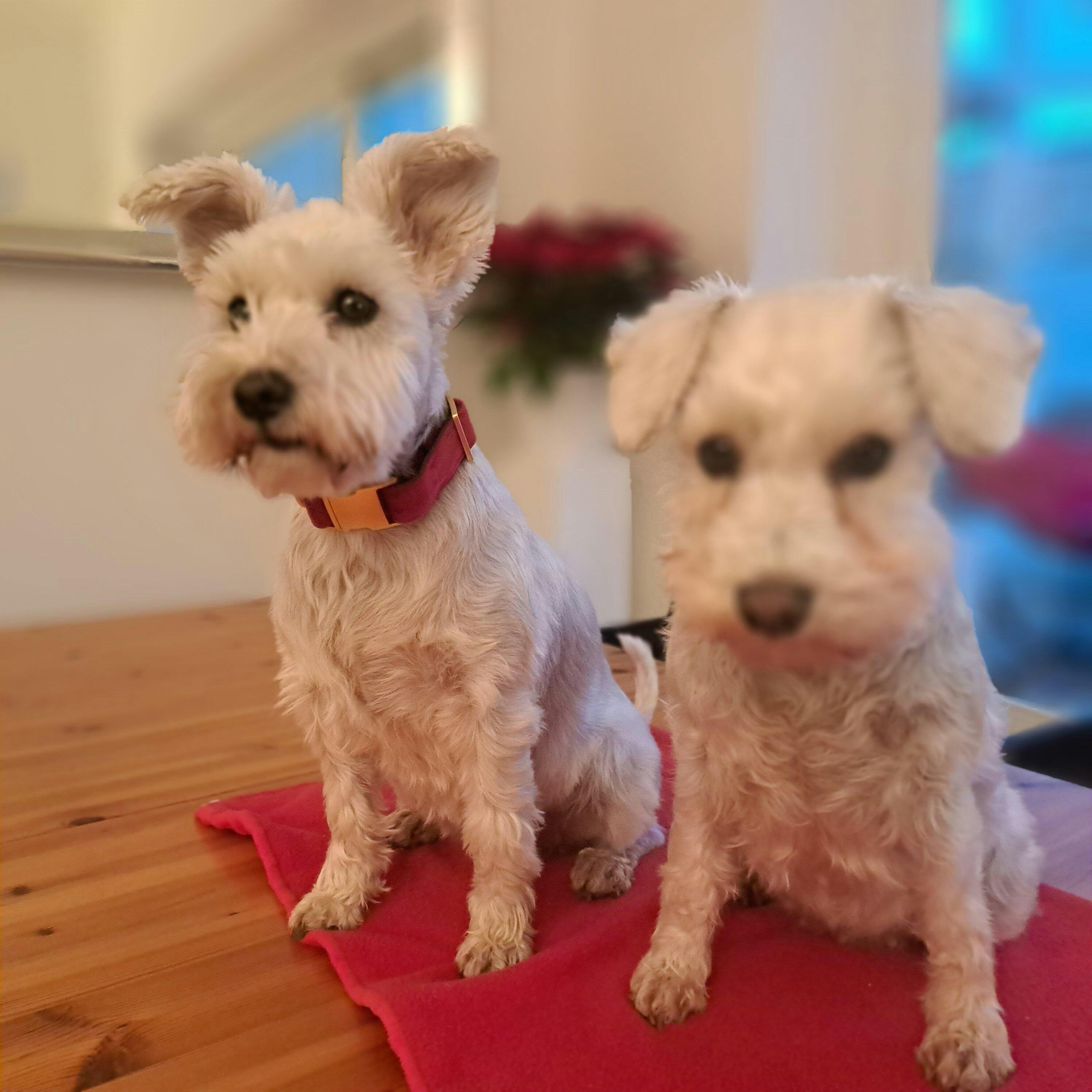 Mit der Ankunft der Santa-Bänder in Sonderbreite für meine Schnauzer-Mädels kann es nun Weihnachten werden