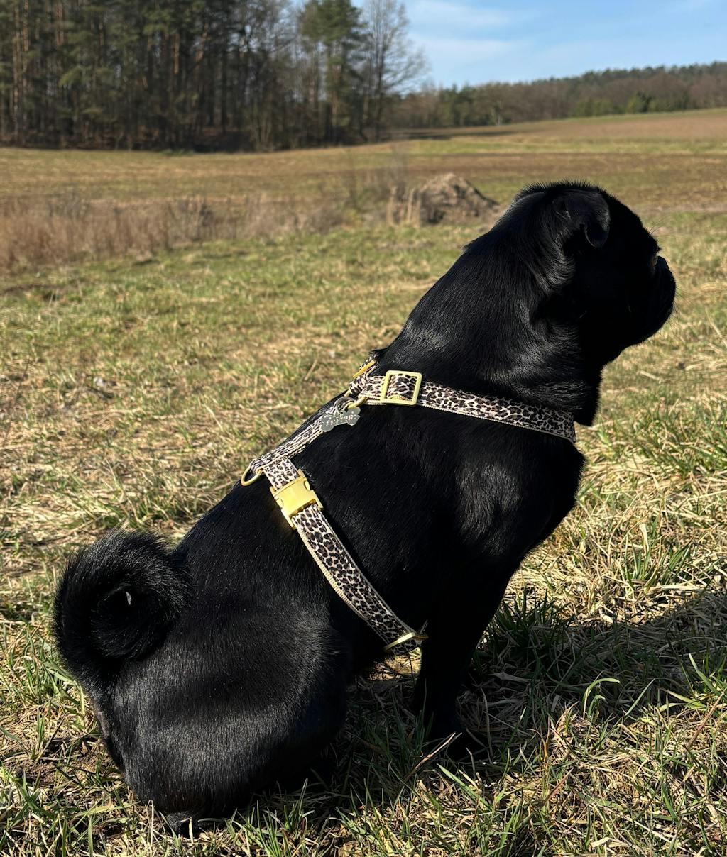 Vielen Dank für dieses super edle und wirklich wunderschöne Geschirr. Obwohl es mit einem Mops immer etwas schwer ist passende Geschirre zu finden, sitzt dieses wie angegossen!