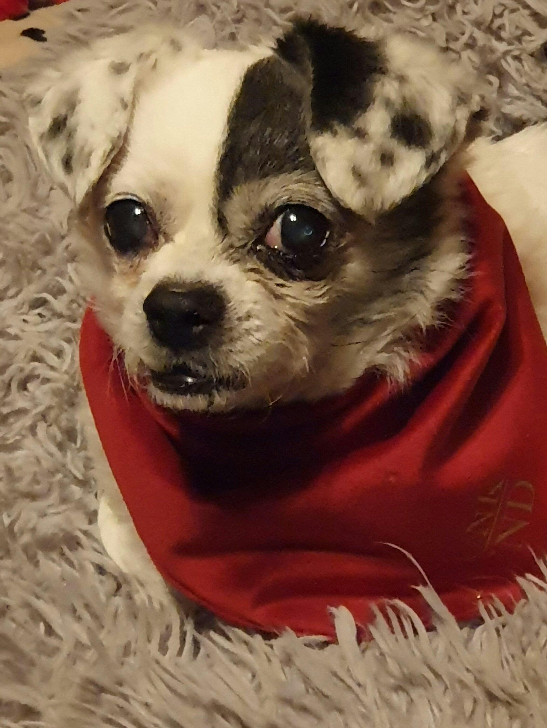 Mein altes, liebes Fienchen trägt mit Stolz ihr neues, wunderschönes Halstuch.