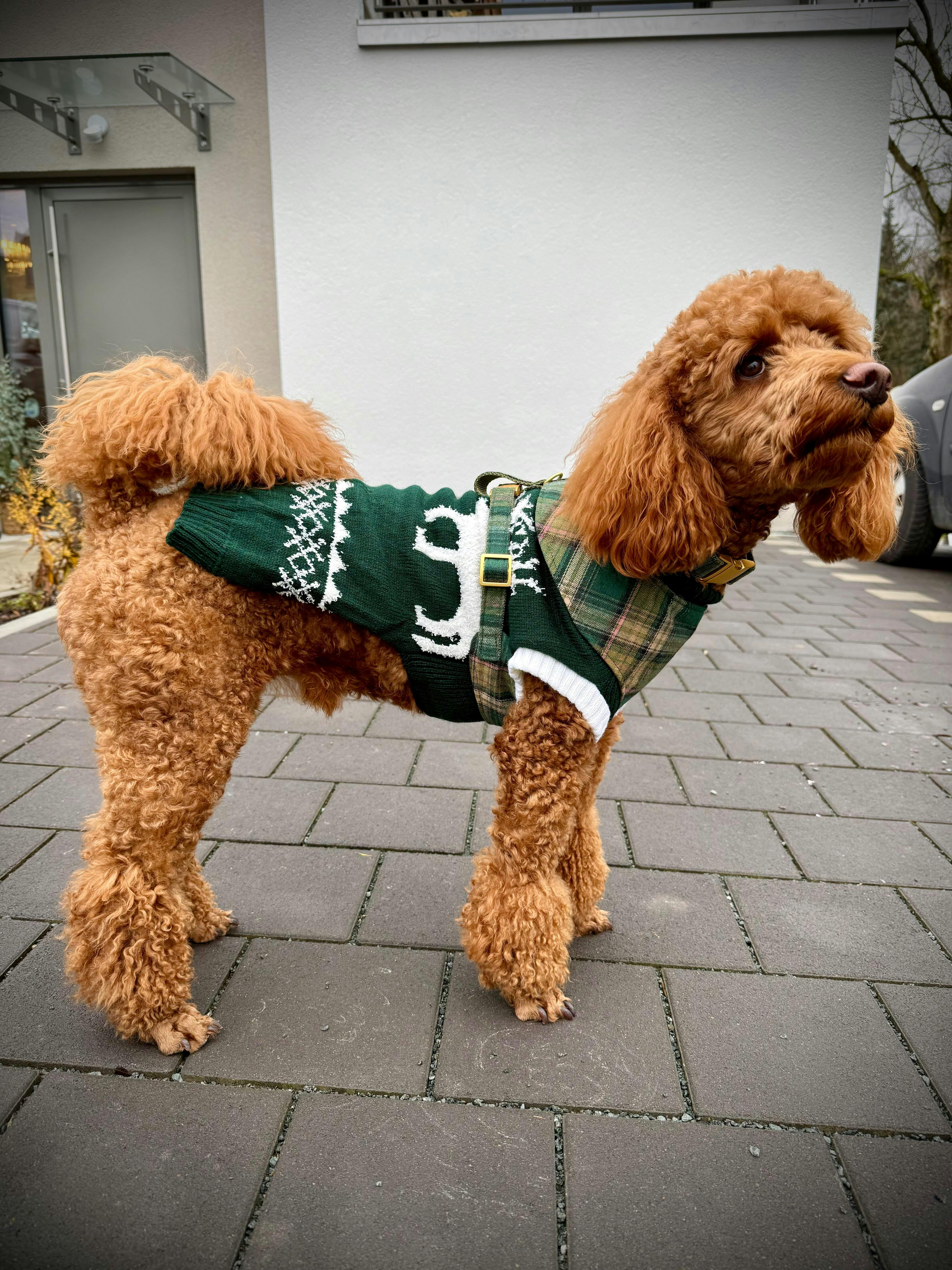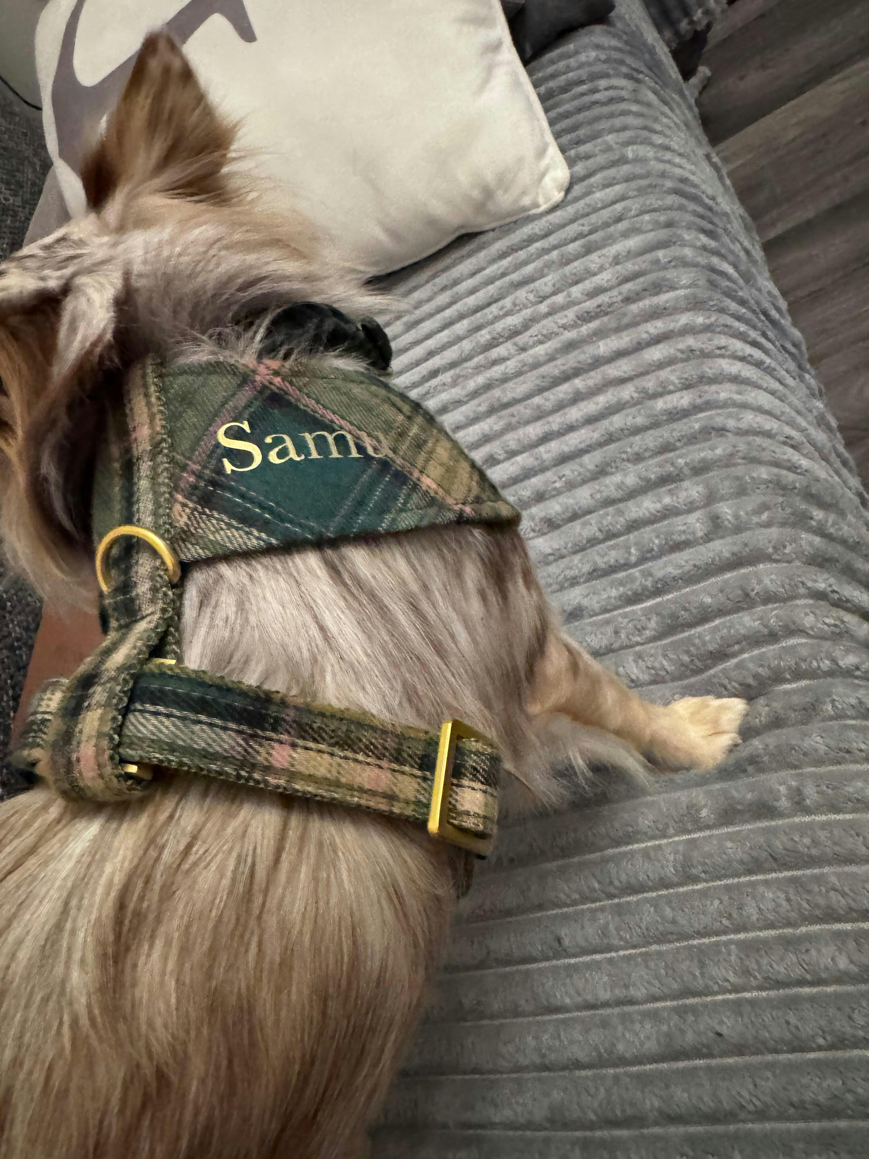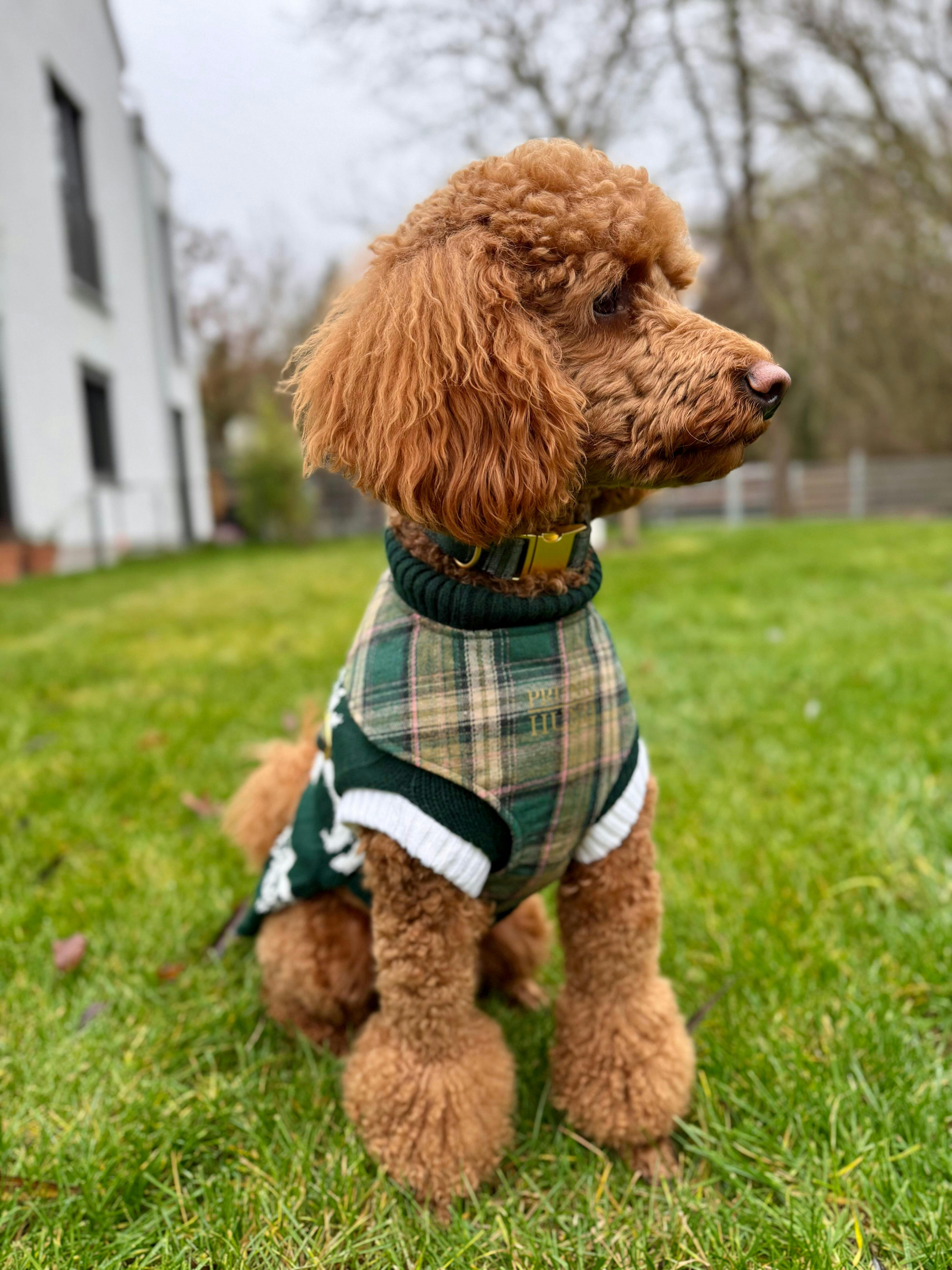 Das Softgeschirr in tartan sieht sehr edel aus. Wir gehen gerne im Wald spazieren und da sieht unser Pudel damit einfach so süß aus. Er kann sich ganz frei damit bewegen.