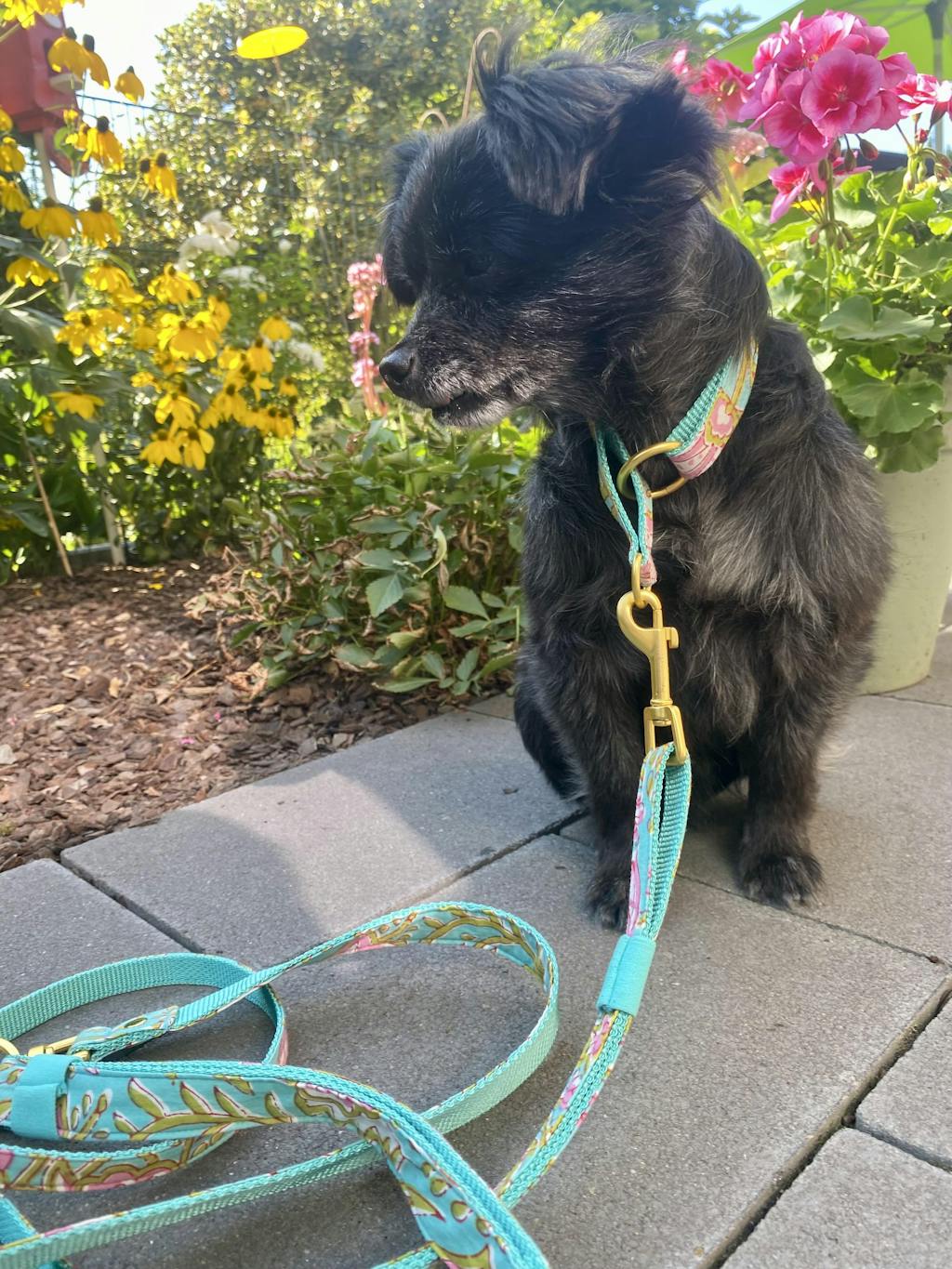 Your new favorite martingale collar combines Indian block print craftsmanship with stylish, matt gold-colored metal parts.
