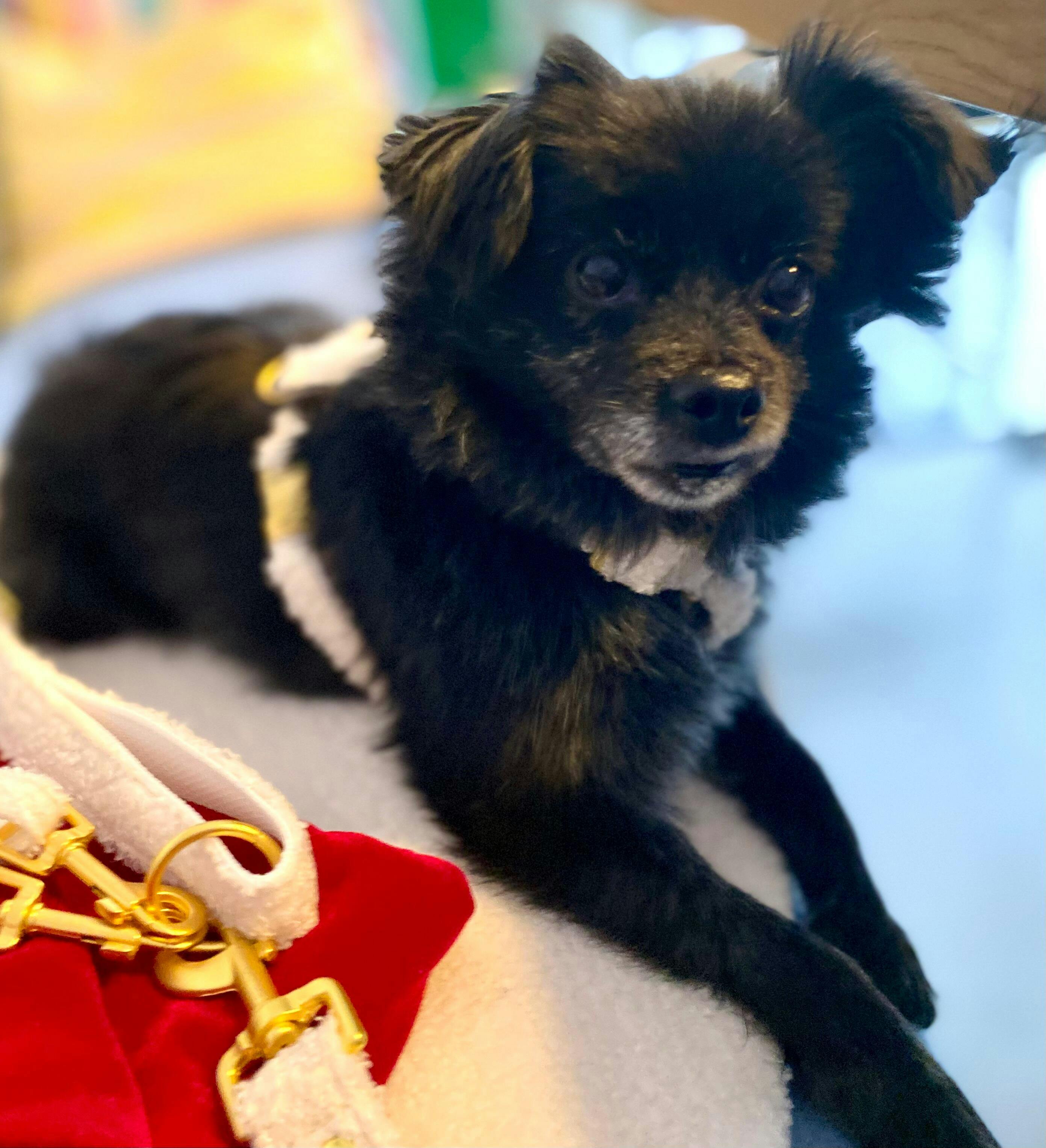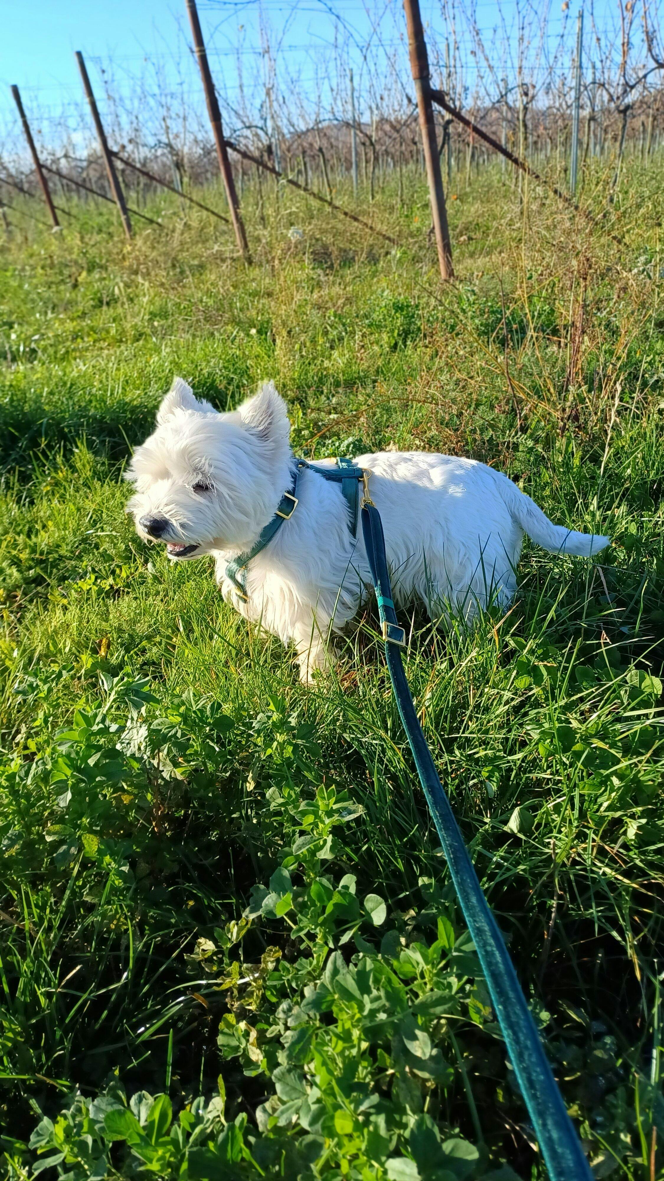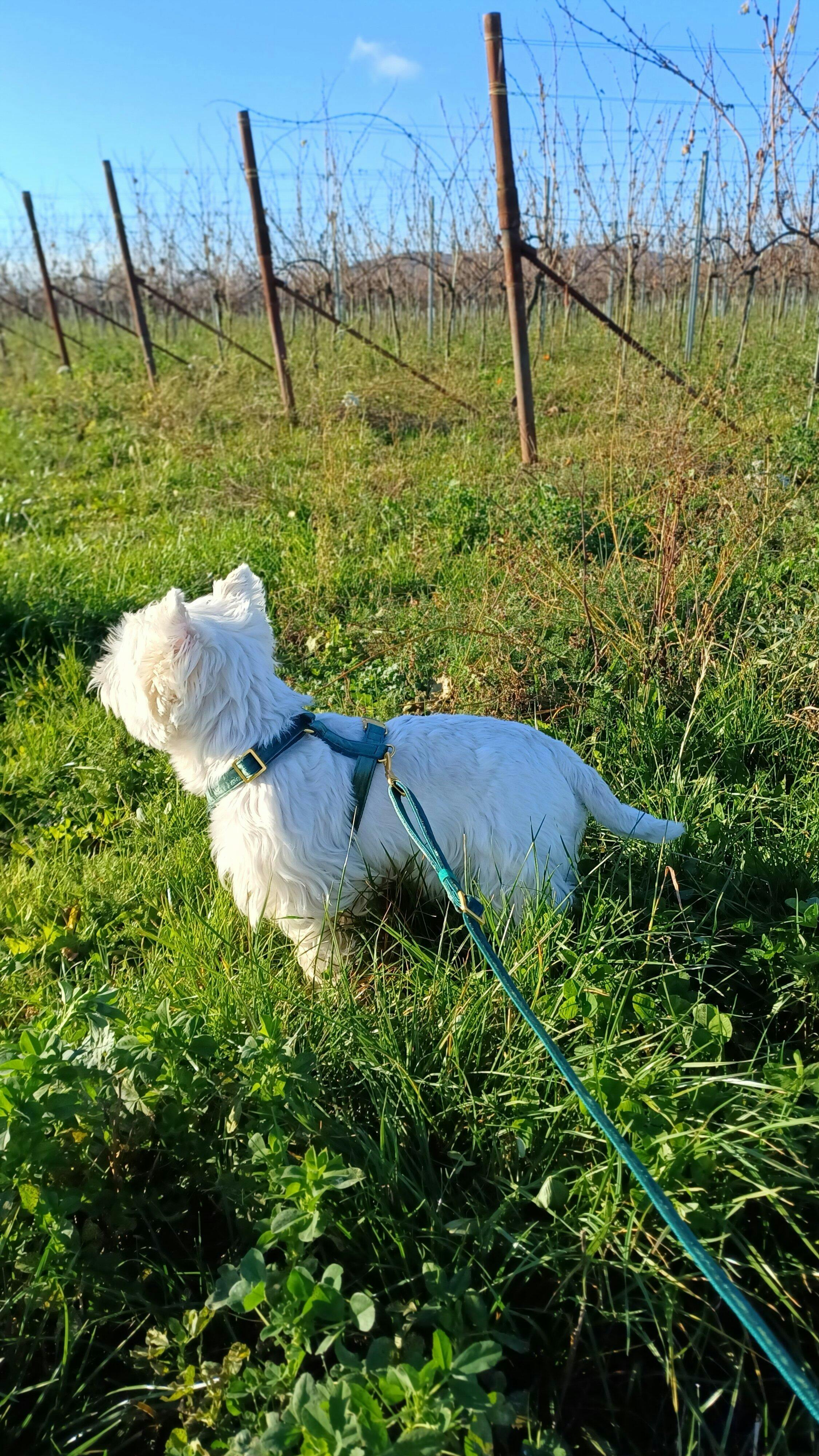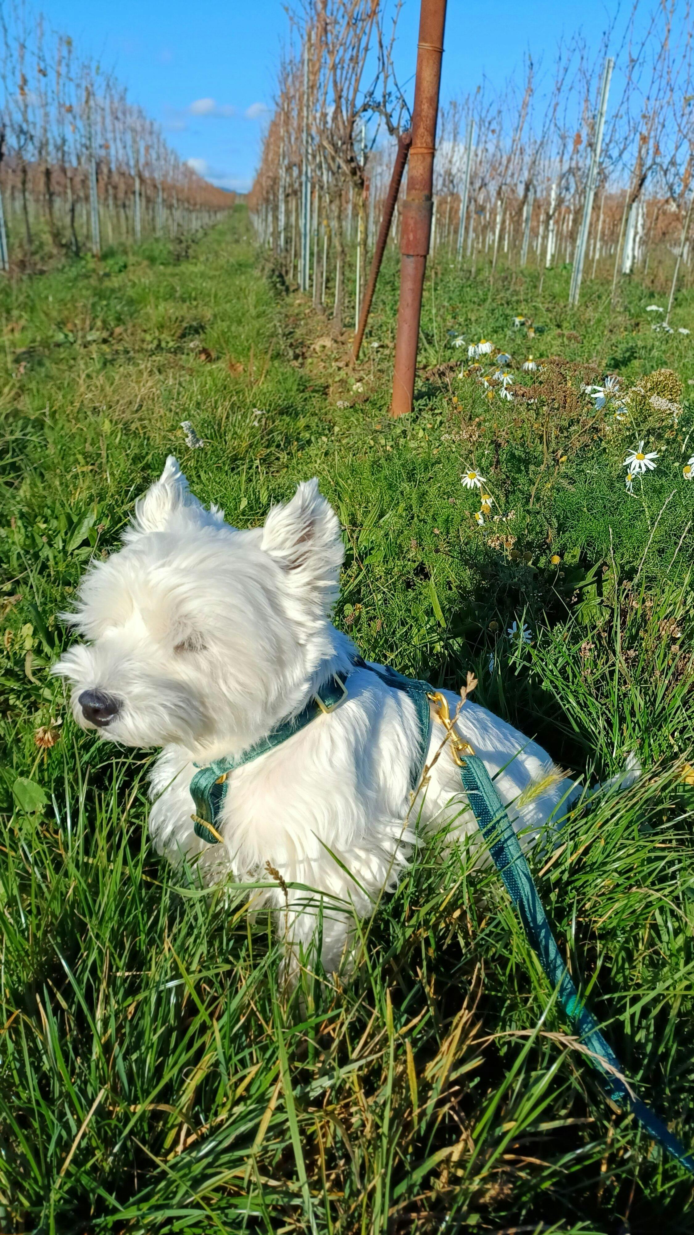 Hi ich bin Loki und das ist mittlerweile mein 3. Prunkhund Set. Meine Mama liebt das Essential System und macht bei meinen Freunden kräftig Werbung dafür. Es ist praktisch, bequem und wunderschön und wenn ich nicht allzu ängstlich bin, trage ich statt des Geschirrs, das passende Halsband in Pinie... meiner Mama hätte für mich das rote Santa Baby vielleicht noch besser gefallen, aber die Mehrheit der Familie war für Pinie. Macht weiter so, Euer Westi Loki
