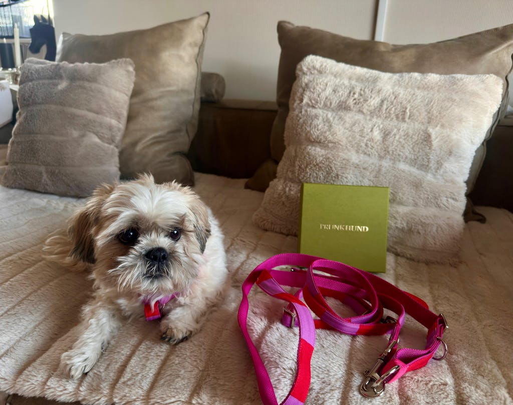 Das Geschirr Capri Pink ist – zusammen mit der passenden Essential Leine und der Schlaufe – unsere erste Bestellung für unseren Hund bei PRUNKHUND. Und ich kann nur sagen: Wir sind rundum begeistert.