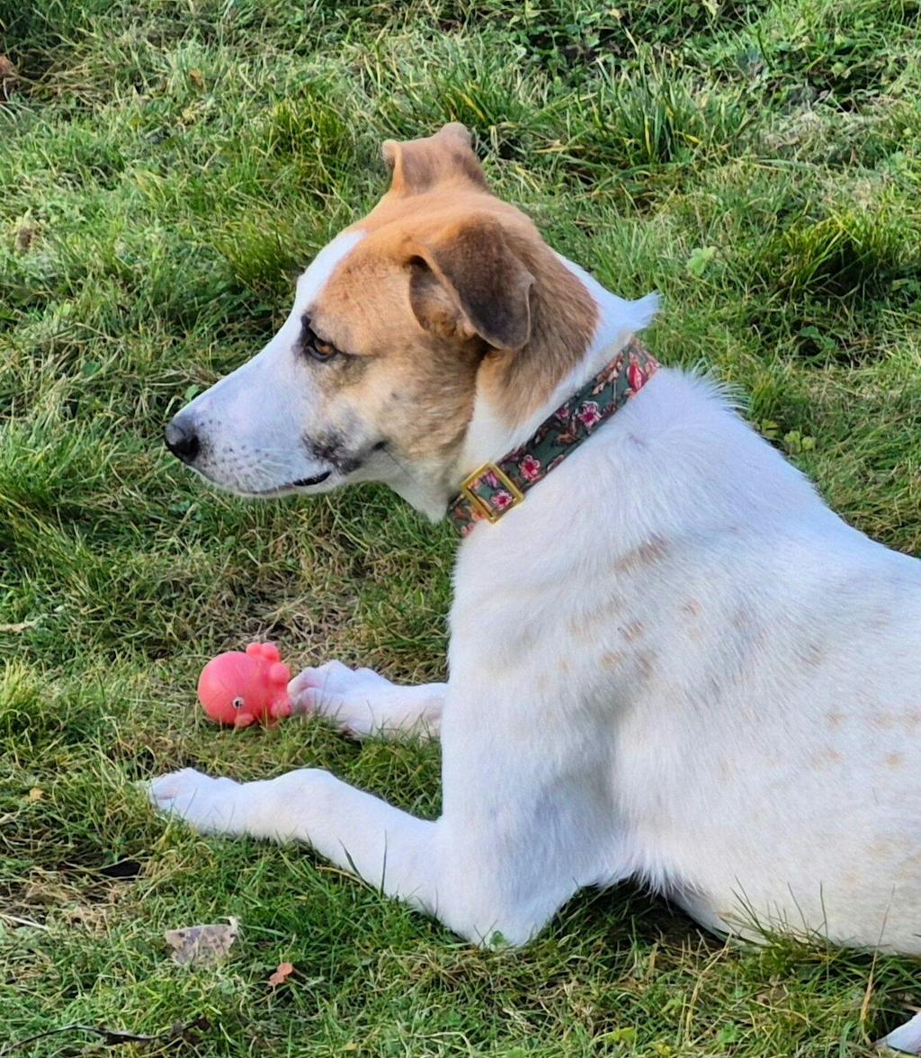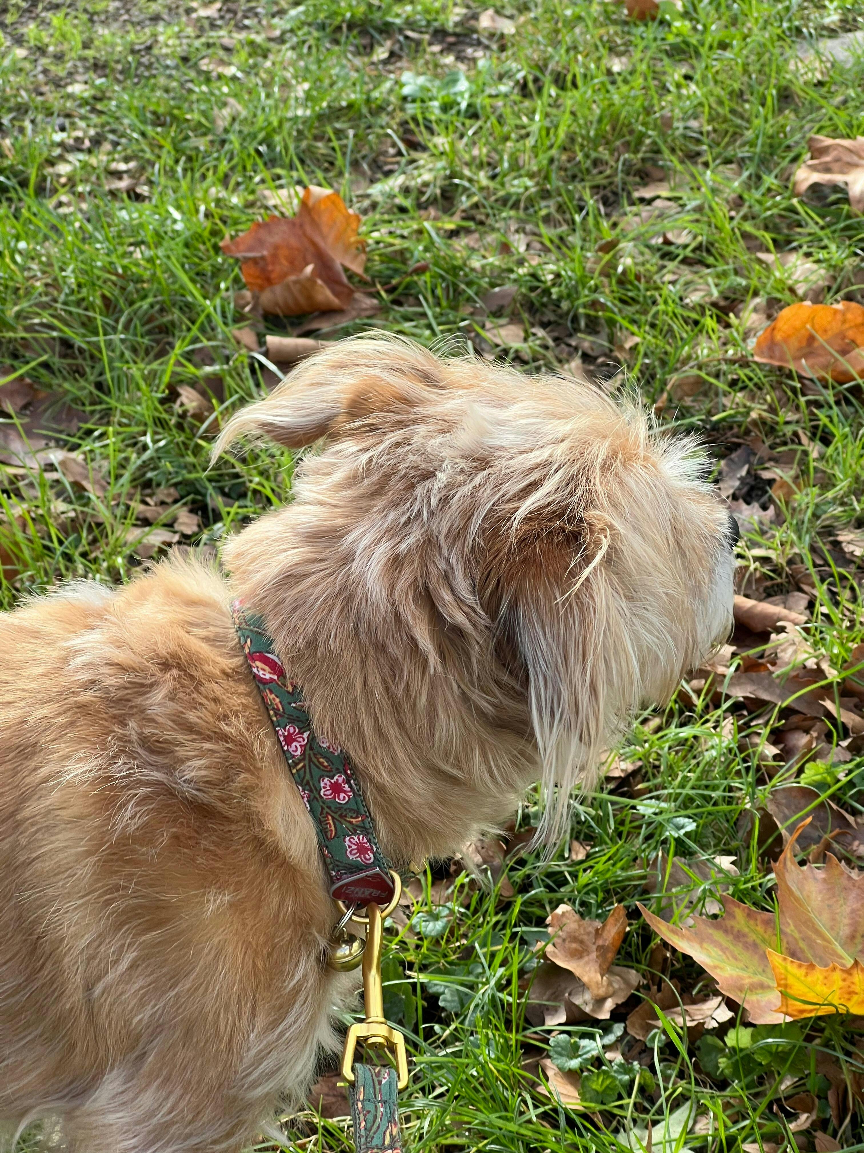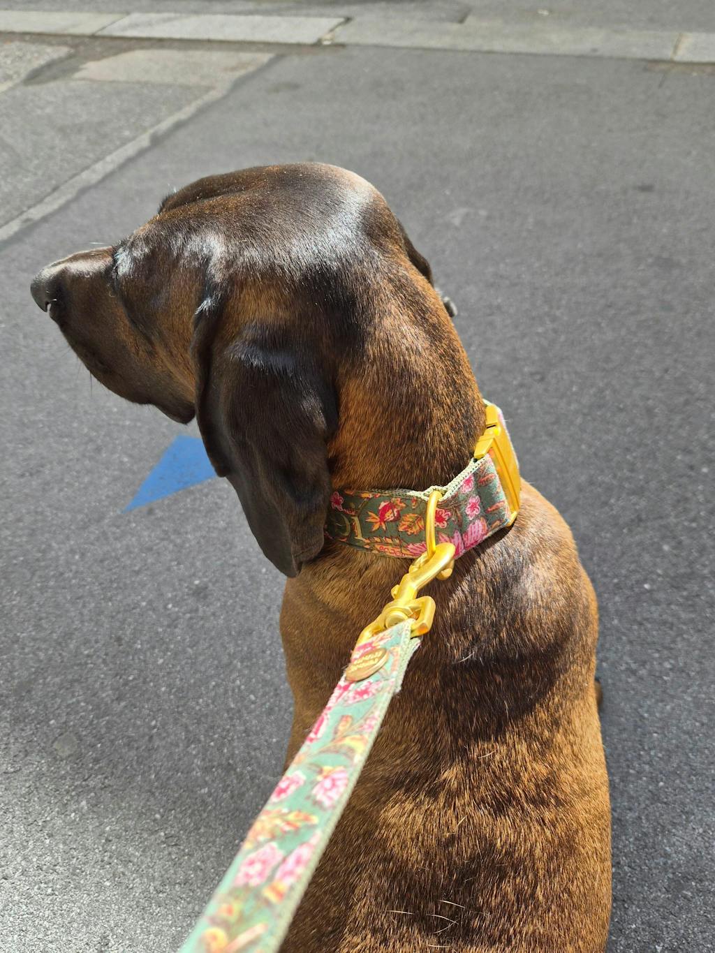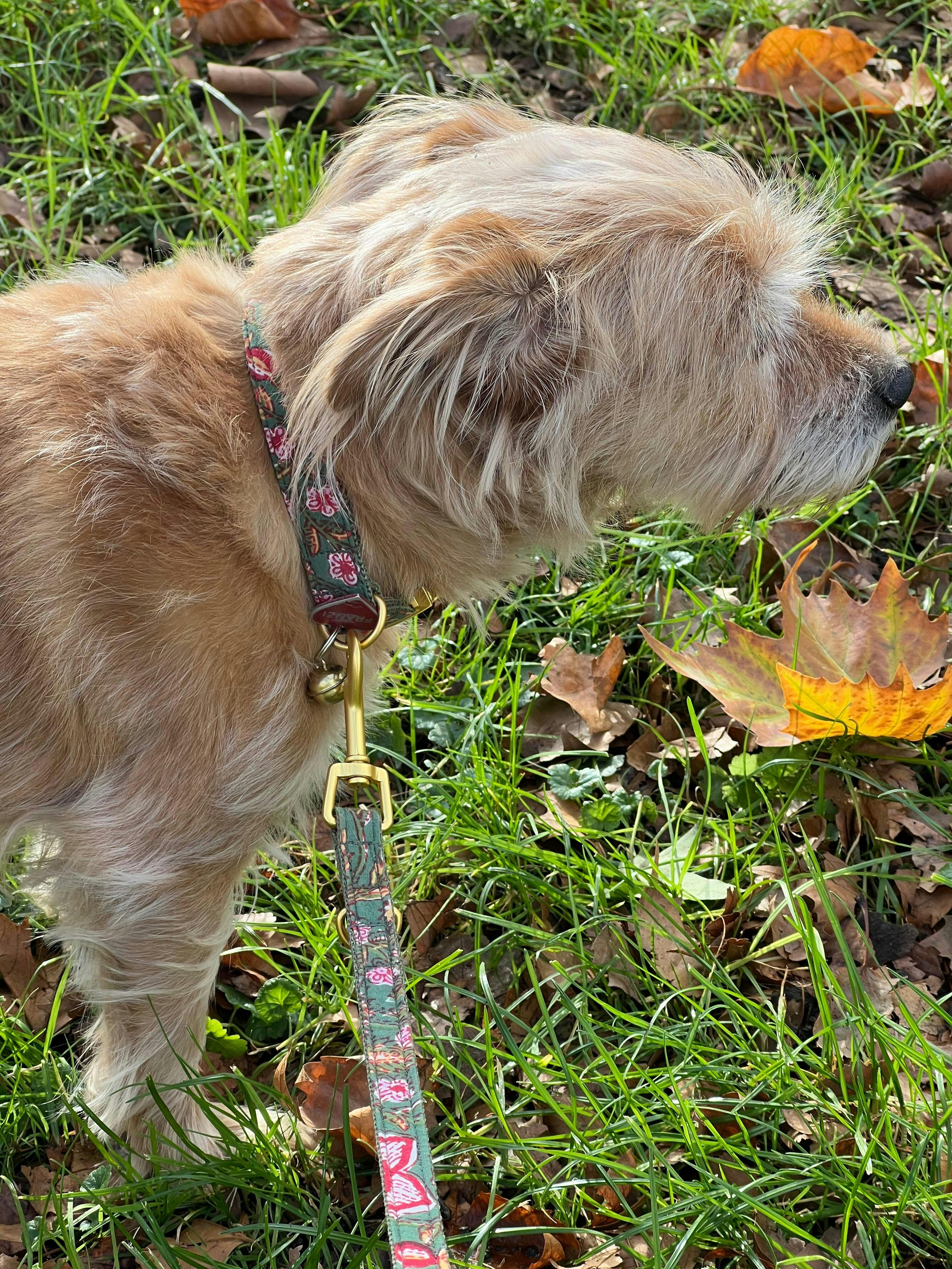Unsere Halsbänder bestehen aus sorgfältig ausgewählten Stoffen oder Bändern, die wir auf robustes Gurtband nähen – für Stabilität und Stil. Sie sind bewusst nicht gepolstert und somit stufenlos verstellbar für die perfekte Passform. Die strapazierfähigen Metallteile entwickeln mit der Zeit eine schöne Patina – ein Zeichen vieler gemeinsamer Abenteuer.
