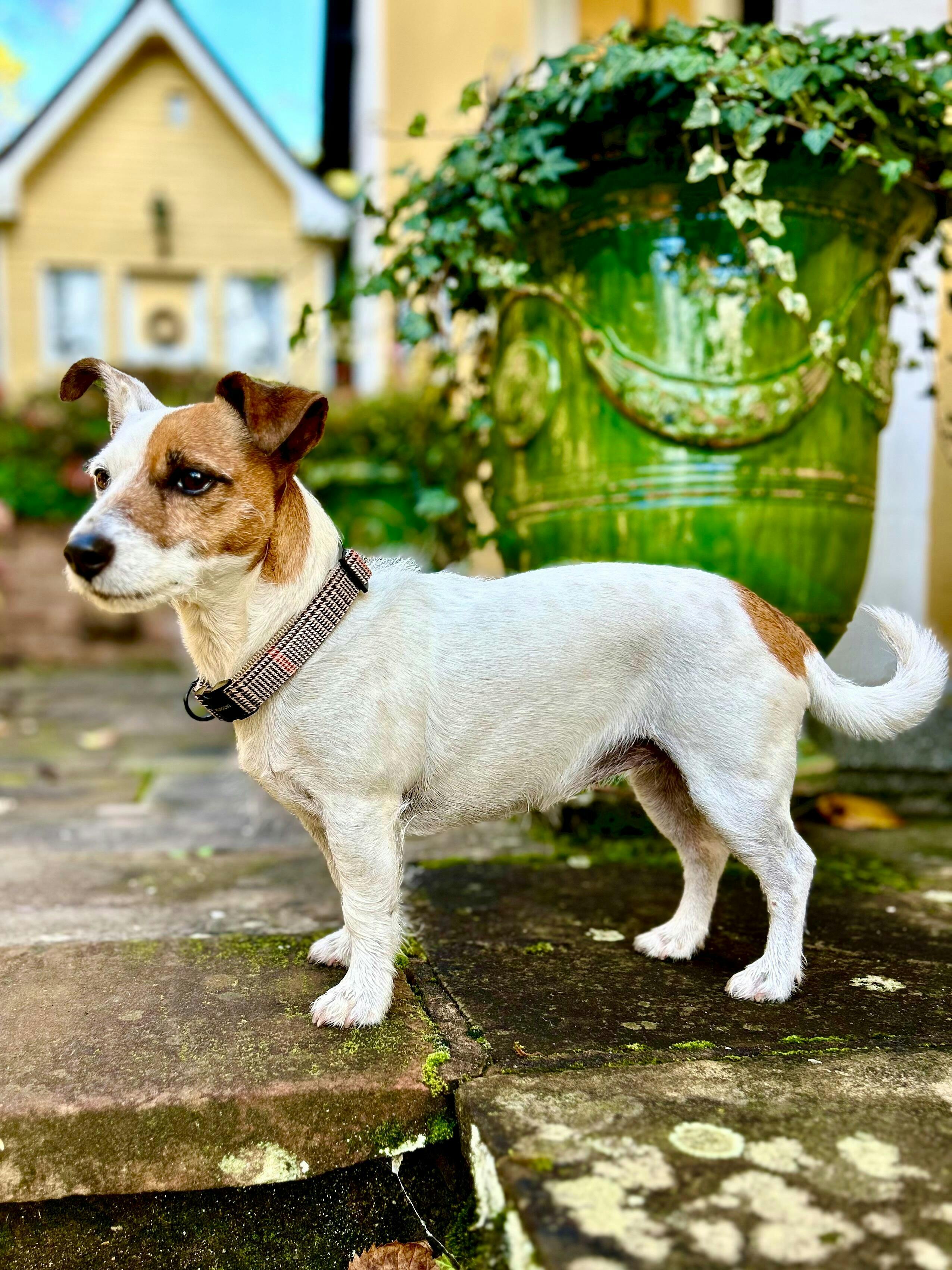 Unsere Halsbänder bestehen aus sorgfältig ausgewählten Stoffen oder Bändern, die wir auf robustes Gurtband nähen – für Stabilität und Stil. Sie sind bewusst nicht gepolstert und somit stufenlos verstellbar für die perfekte Passform. Die strapazierfähigen Metallteile entwickeln mit der Zeit eine schöne Patina – ein Zeichen vieler gemeinsamer Abenteuer.