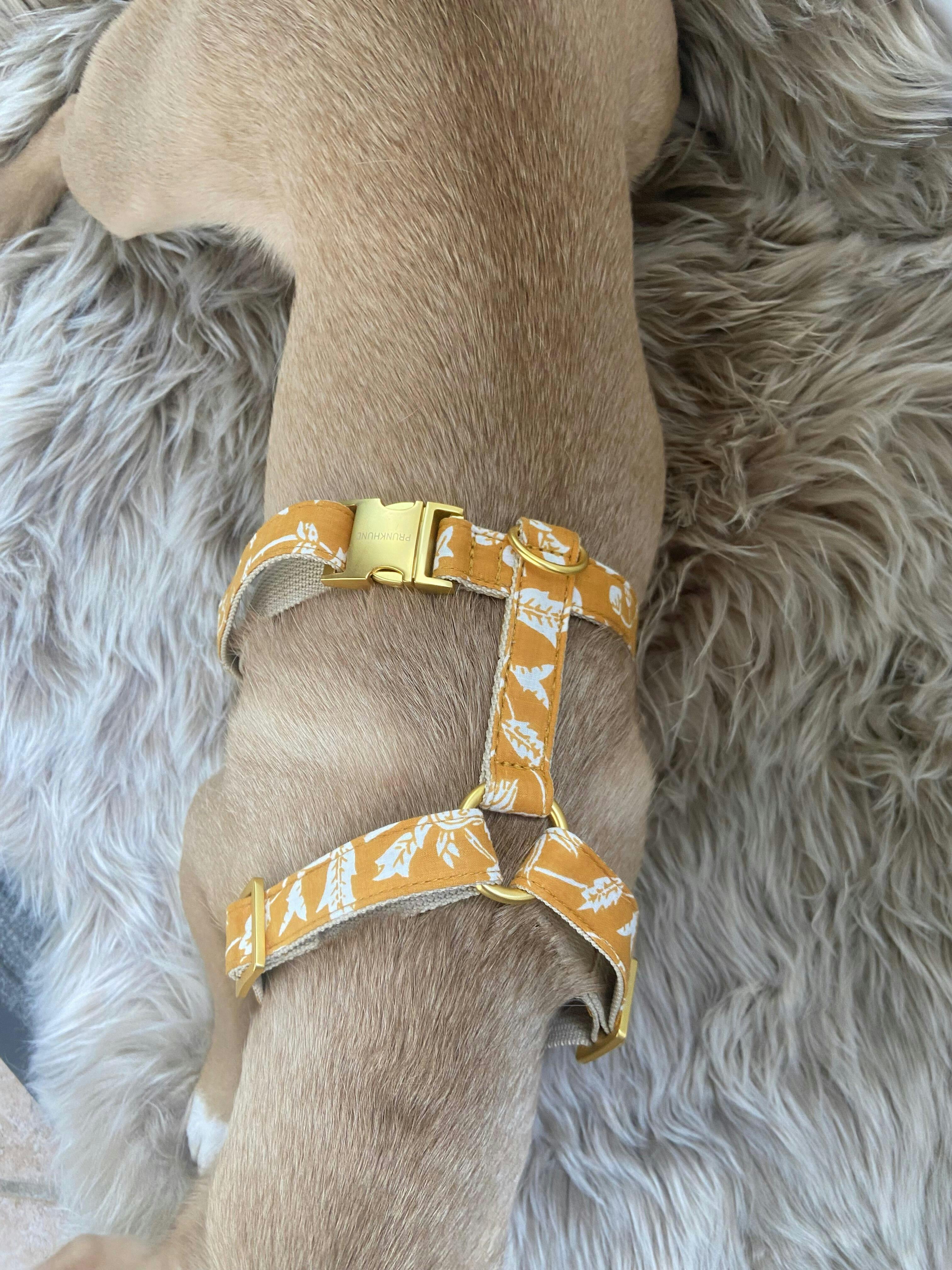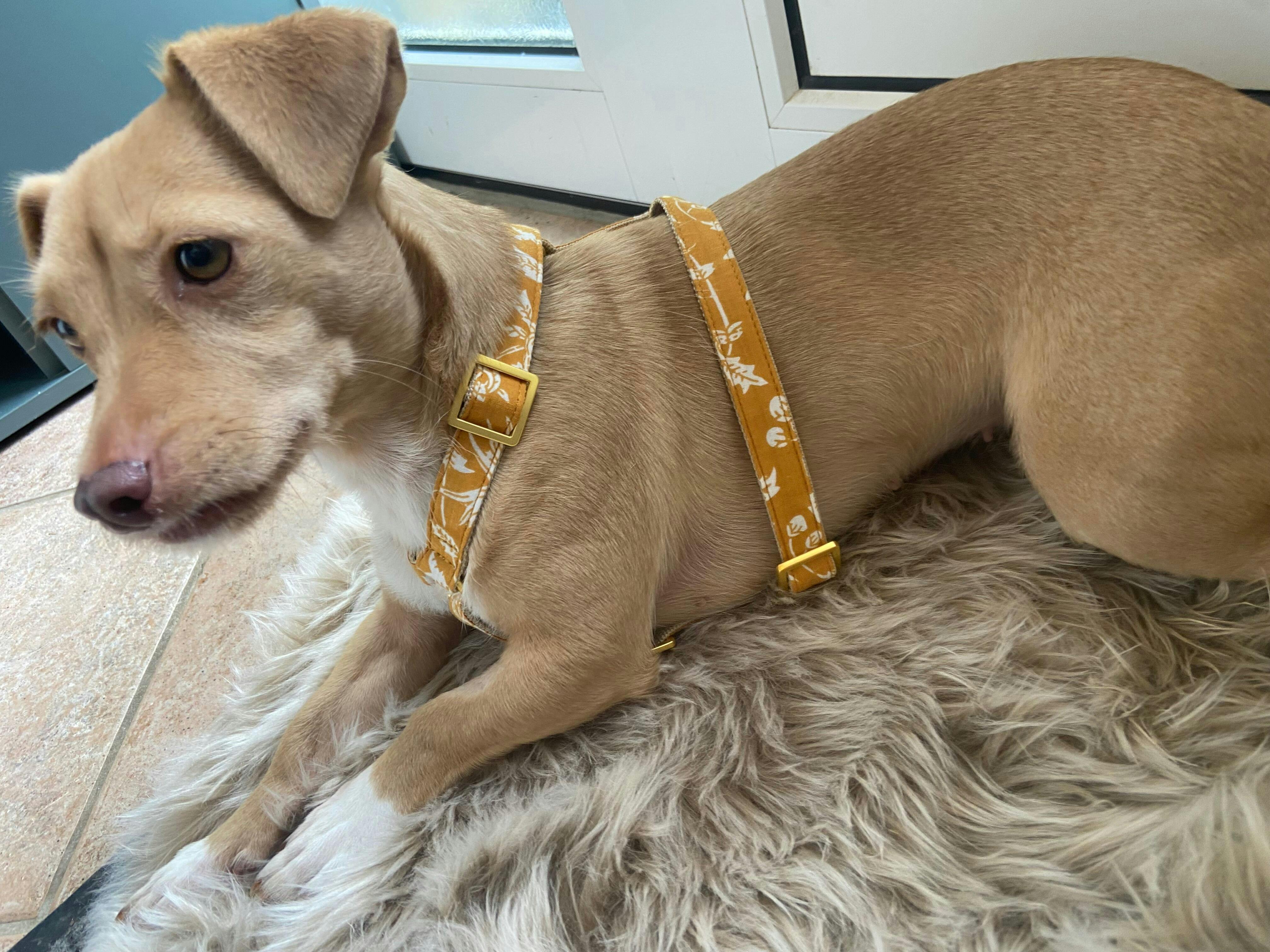 Mit Sorgfalt und Liebe zum Detail fertigen wir dieses Geschirr in unserer Manufaktur für deinen Prunkhund, damit es euch auf viele gemeinsame Abteuer begleitet.