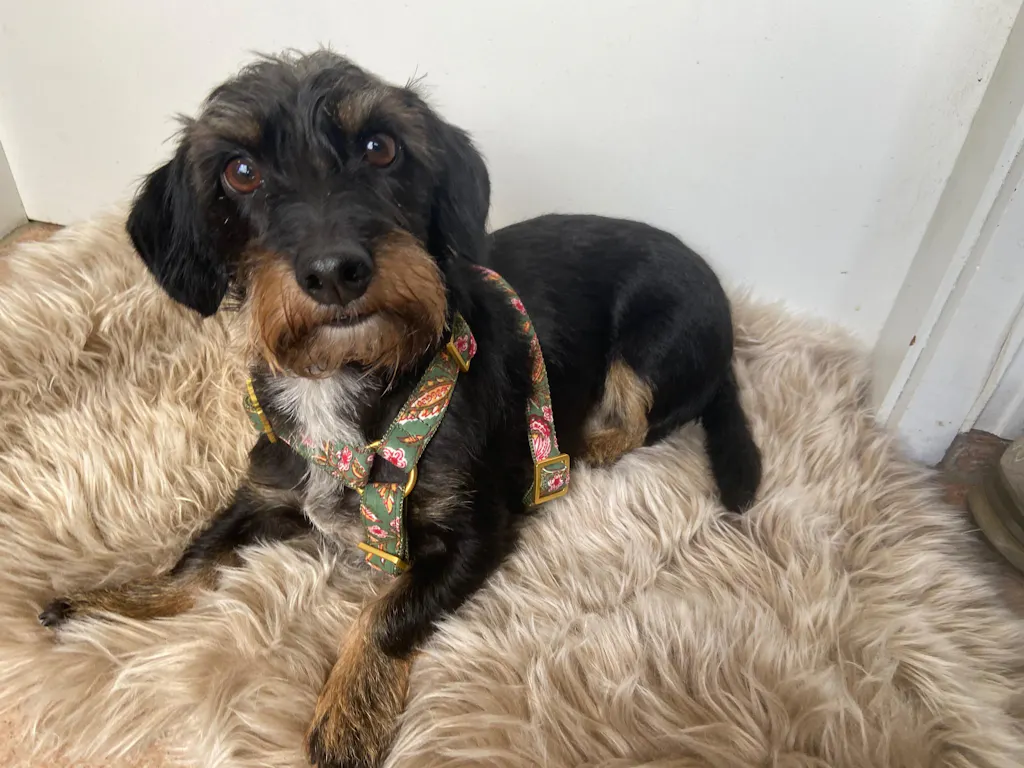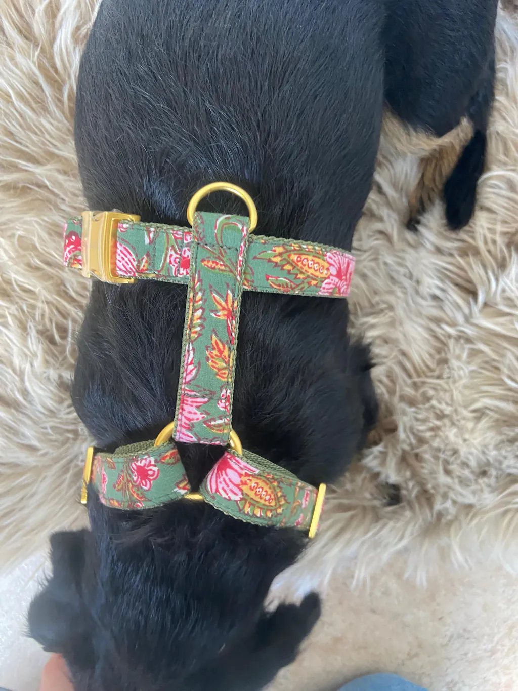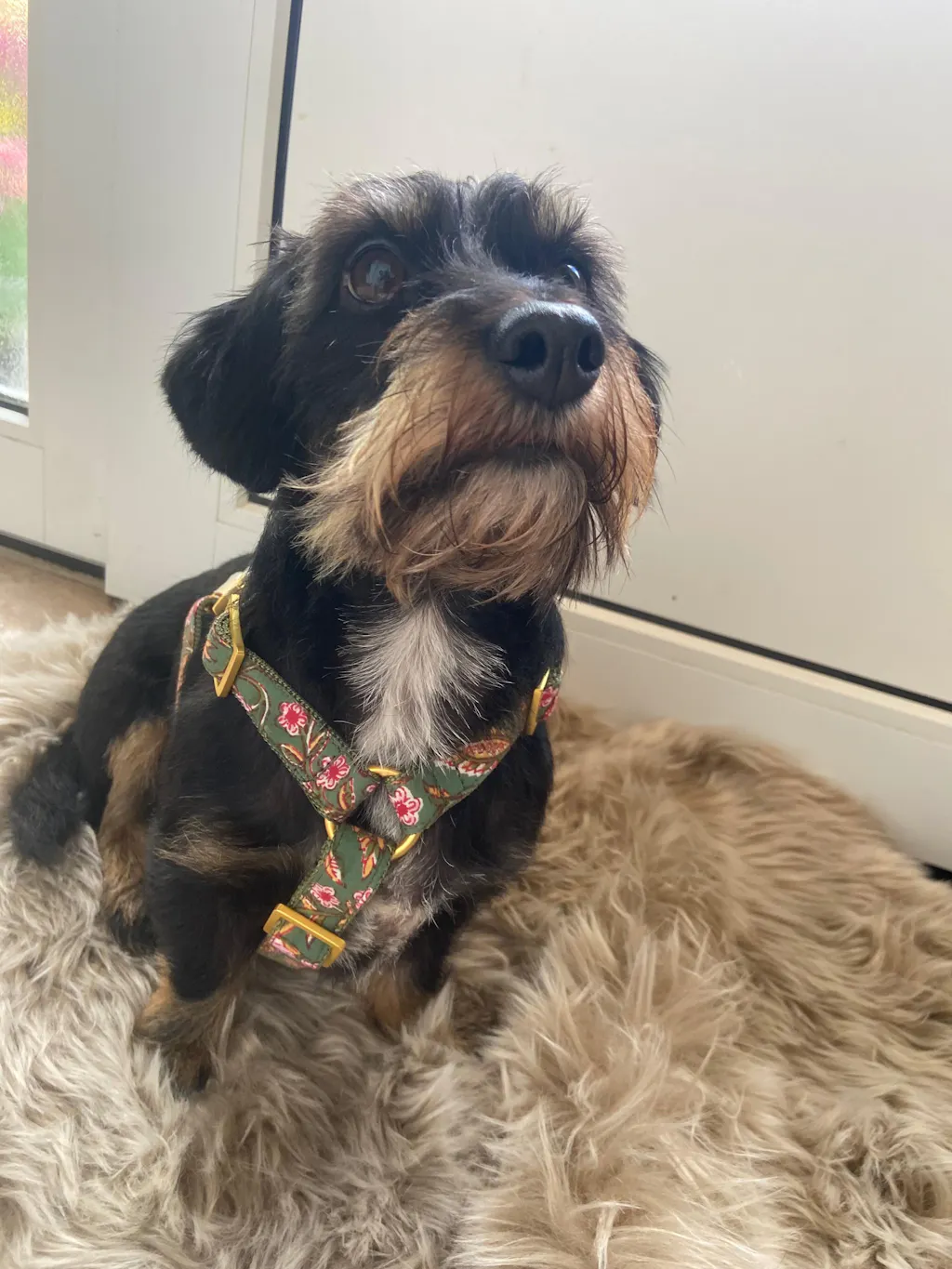 Mit Sorgfalt und Liebe zum Detail fertigen wir dieses Geschirr in unserer Manufaktur für deinen Prunkhund, damit es euch auf viele gemeinsame Abteuer begleitet.