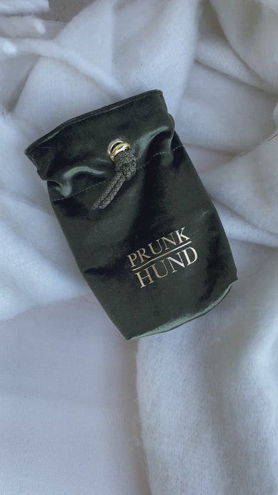 Der Leckerlibeutel MOSS ist aus weichem grünem Samt gefertigt.