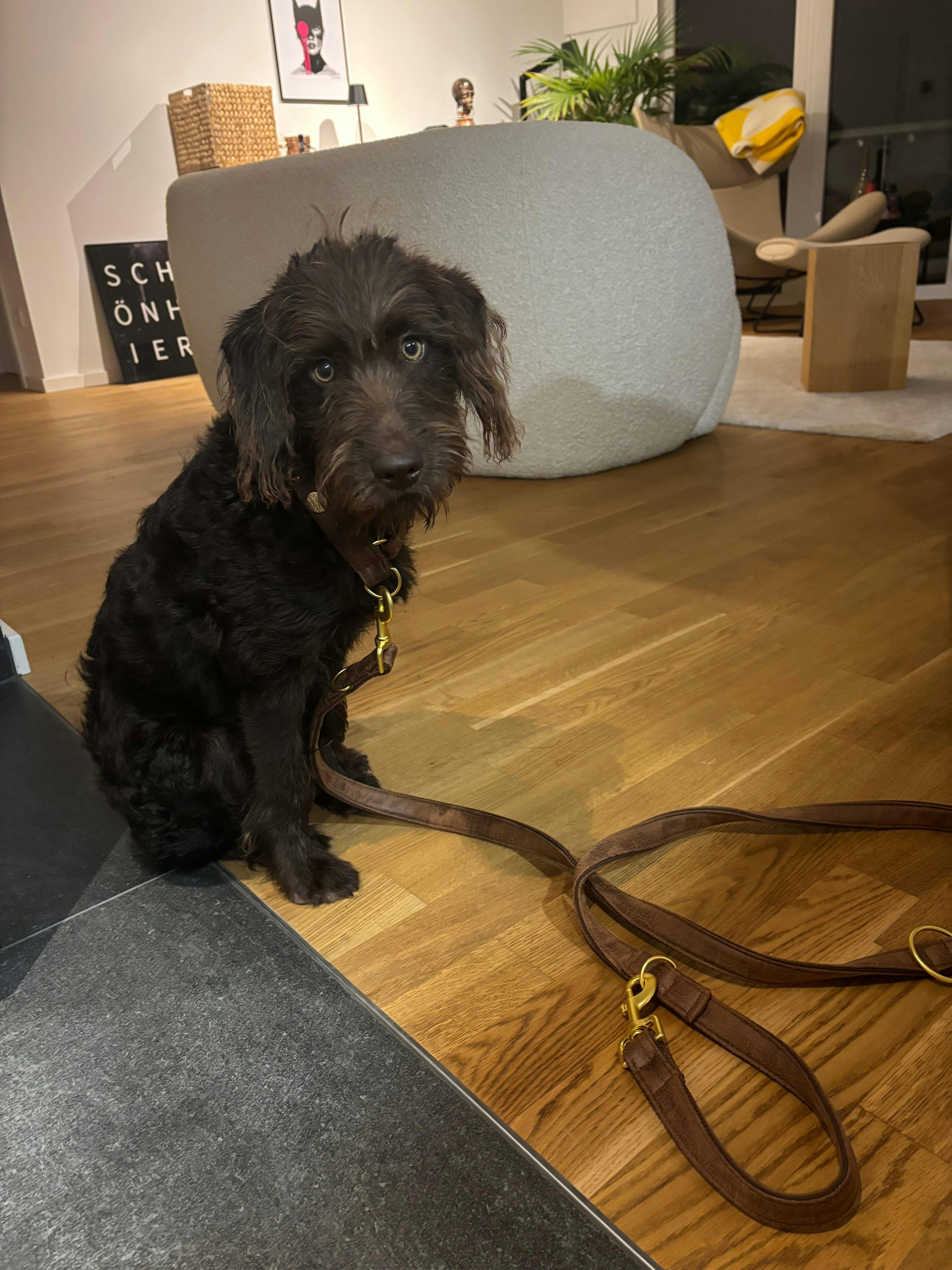 Es passt ALLES: Das Team von Prunkhund hat unsere Sonderwünsche (besondere Länge und Ring an der Handschlaufe) perfekt umgesetzt. Das Set wurde zudem schnell geliefert. Besonders erwähnenswert ist die liebevolle und edle Verpackung. Halsband und Leine sind in Bezug auf Material und Verarbeitung von bester Qualität. Und Modell und Fell harmonieren in unserem Fall perfekt!