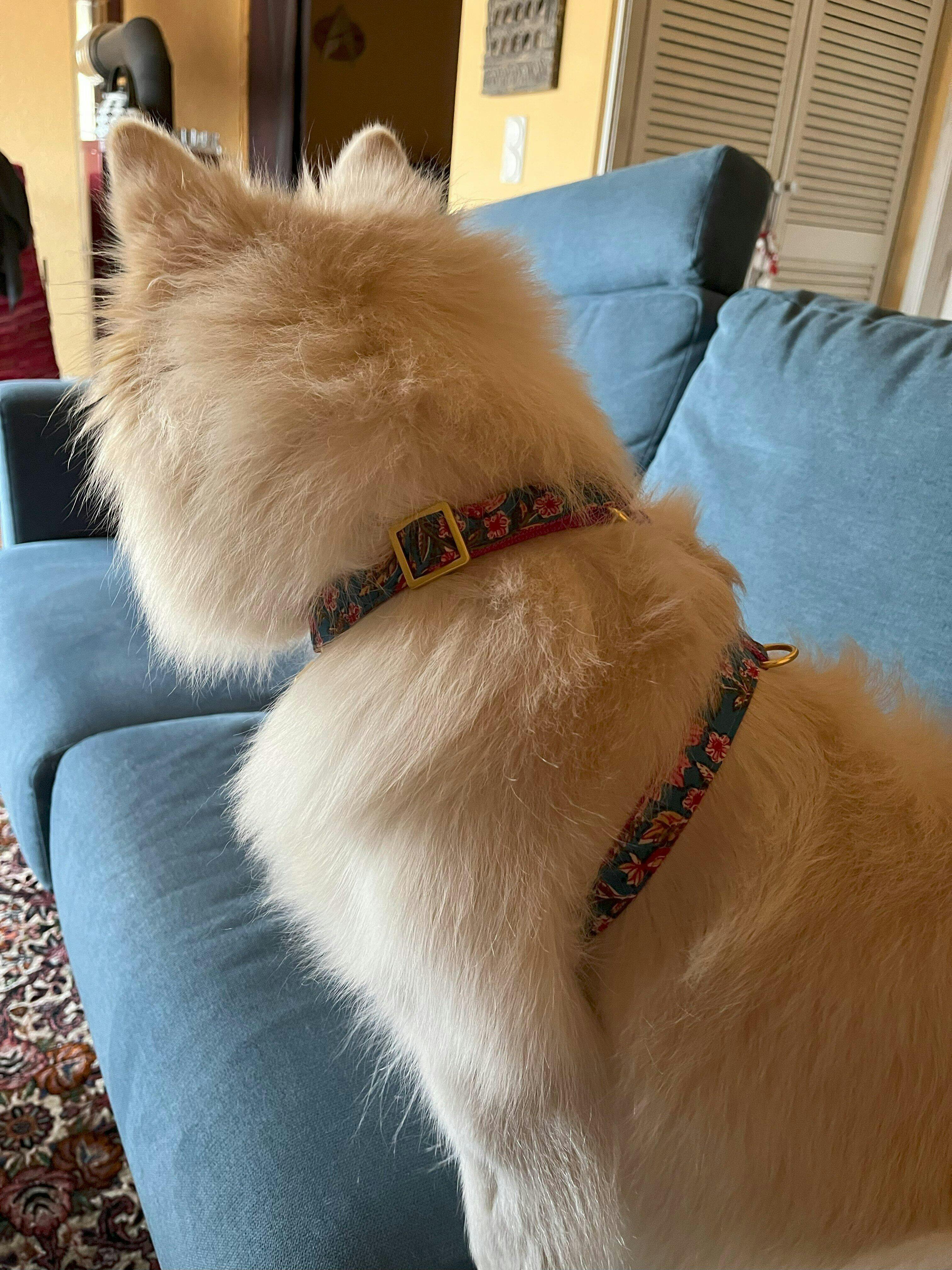 Das Softgeschirr war für unserem Großspitz leider am Hals viel zu breit, oder der Hund hat einfach zu viel Fell dafür :-) . Wir konnten es aber problemlos umtauschen, und das Standardgeschirr in Größe M passt nun perfekt an ein 12 kg Großspitz Mädchen. Die passende Leine haben wir natürlich auch dazu, so daß die Prinzessin jetzt komplett eingekleidet ist.