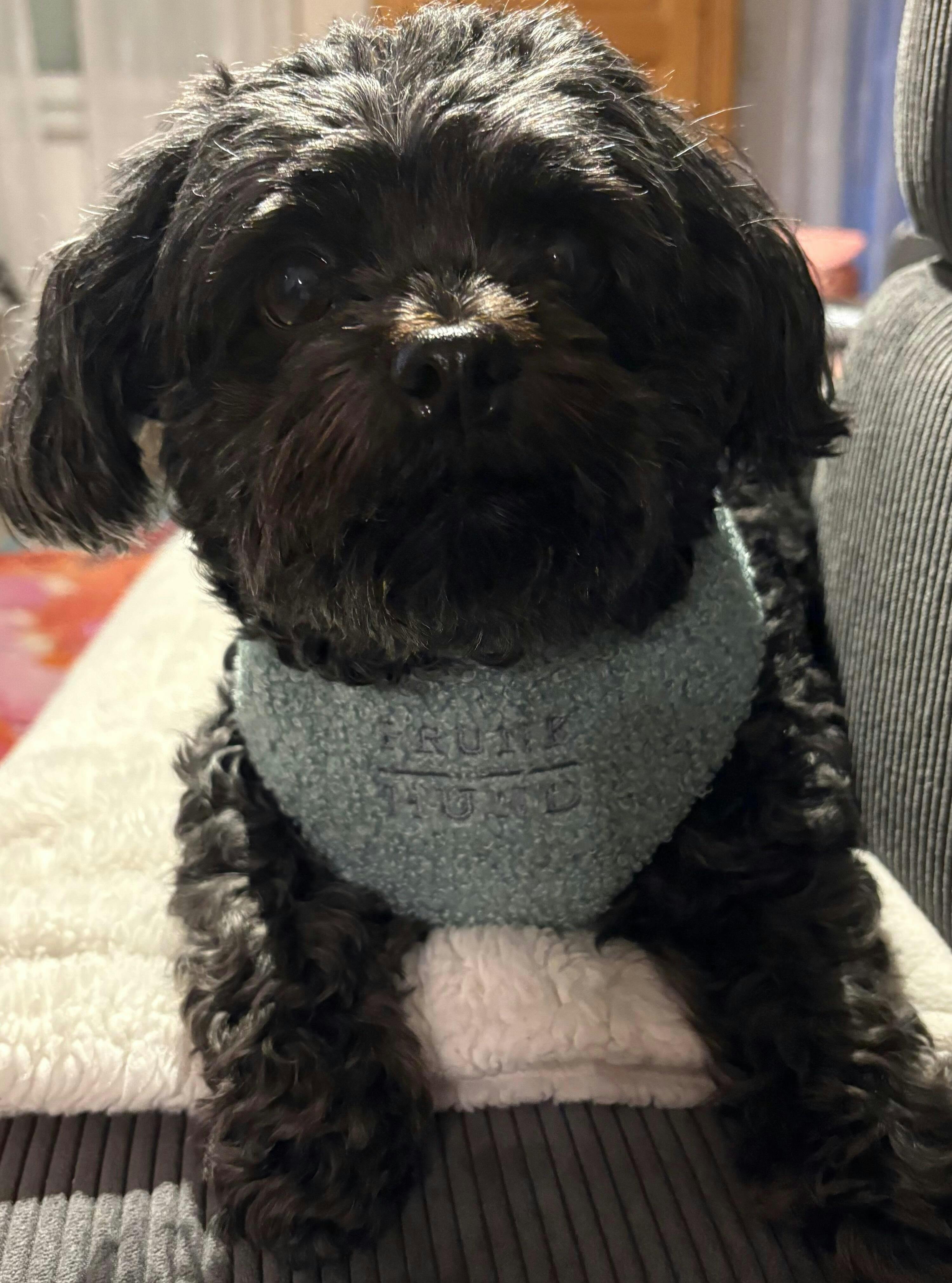 Das TEDDY Hundegeschirr ist das perfekte Modell für Herbst und Winter mit deinem Hund. Es wird von uns aus Bouclé und stabilem Gurtband mit silberfarbenen Metallteilen in München handgefertigt.