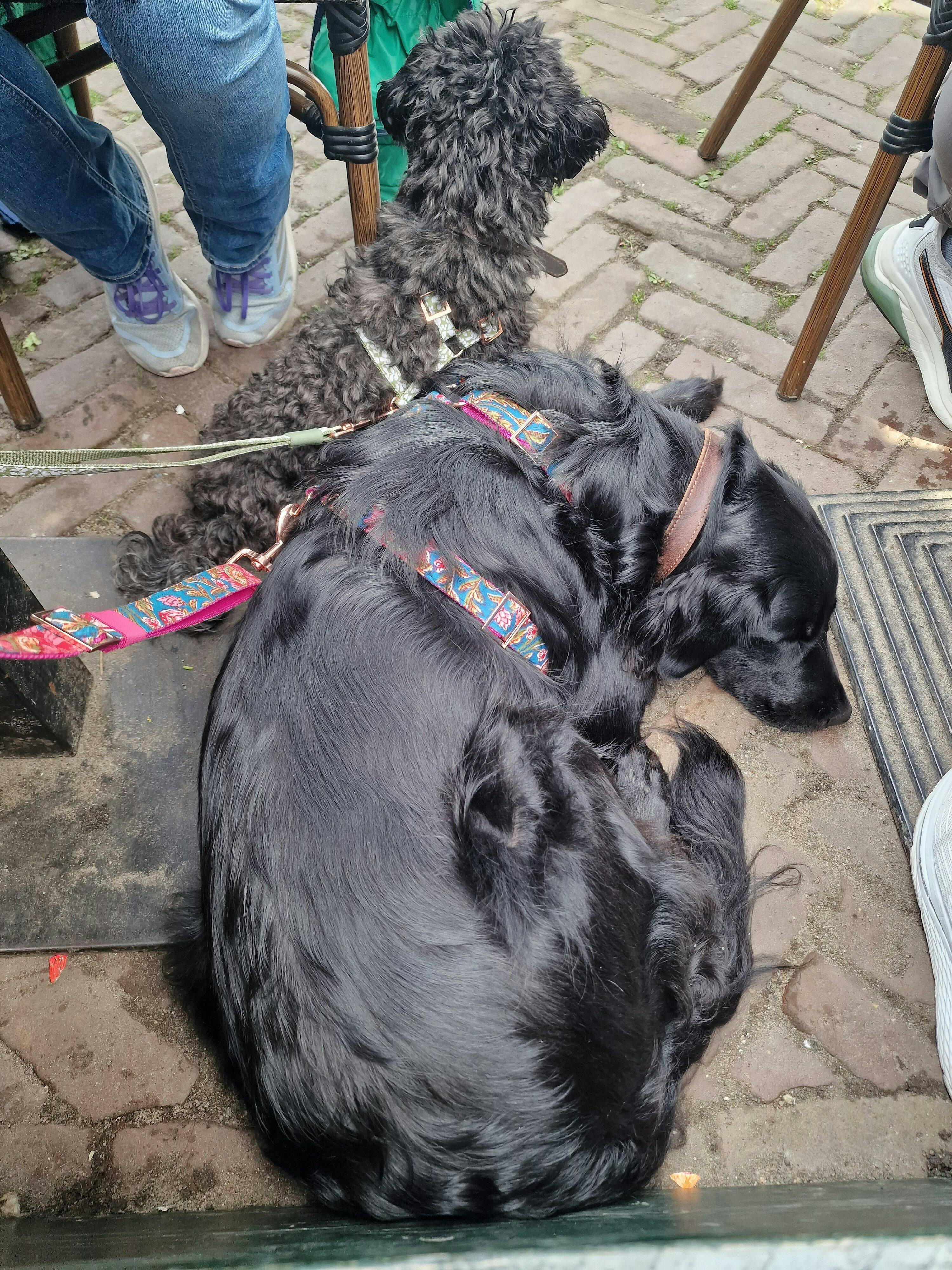 Unsere beiden Hunde sind jetzt richtige Prunkhunde. Wir lieben das Essential Leinensystem. Mit dem Zwischenstück gibt es kein Verhedern und wir haben die Hände trotzdem frei. Und mit den tollen Designs sehen sie auch noch richtig schick aus.